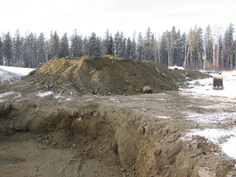 Spoil pile of contaminated soil material staged for loading and disposal, 2008.